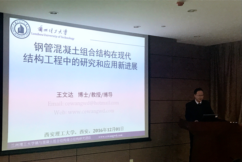 2016年12月1日上午,应学院邀请,兰州理工大学王文达教授在我校金花校区学科二号楼报告厅作了题为《钢管混凝土组合结构在现代结构工程中的研究和应用新进展》的学术报告。我院土木系教师、博士、硕士研究生等百余人参加了此次报告会。会议由院长党发宁教授主持。