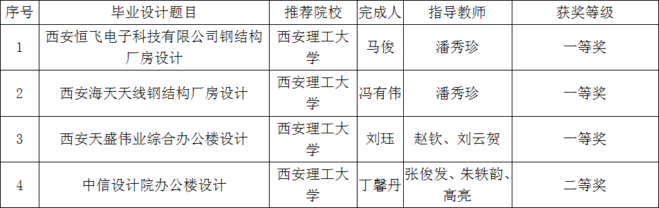附:我校2016年度(第22届)陕西高校土建专业优秀毕业设计获奖名单