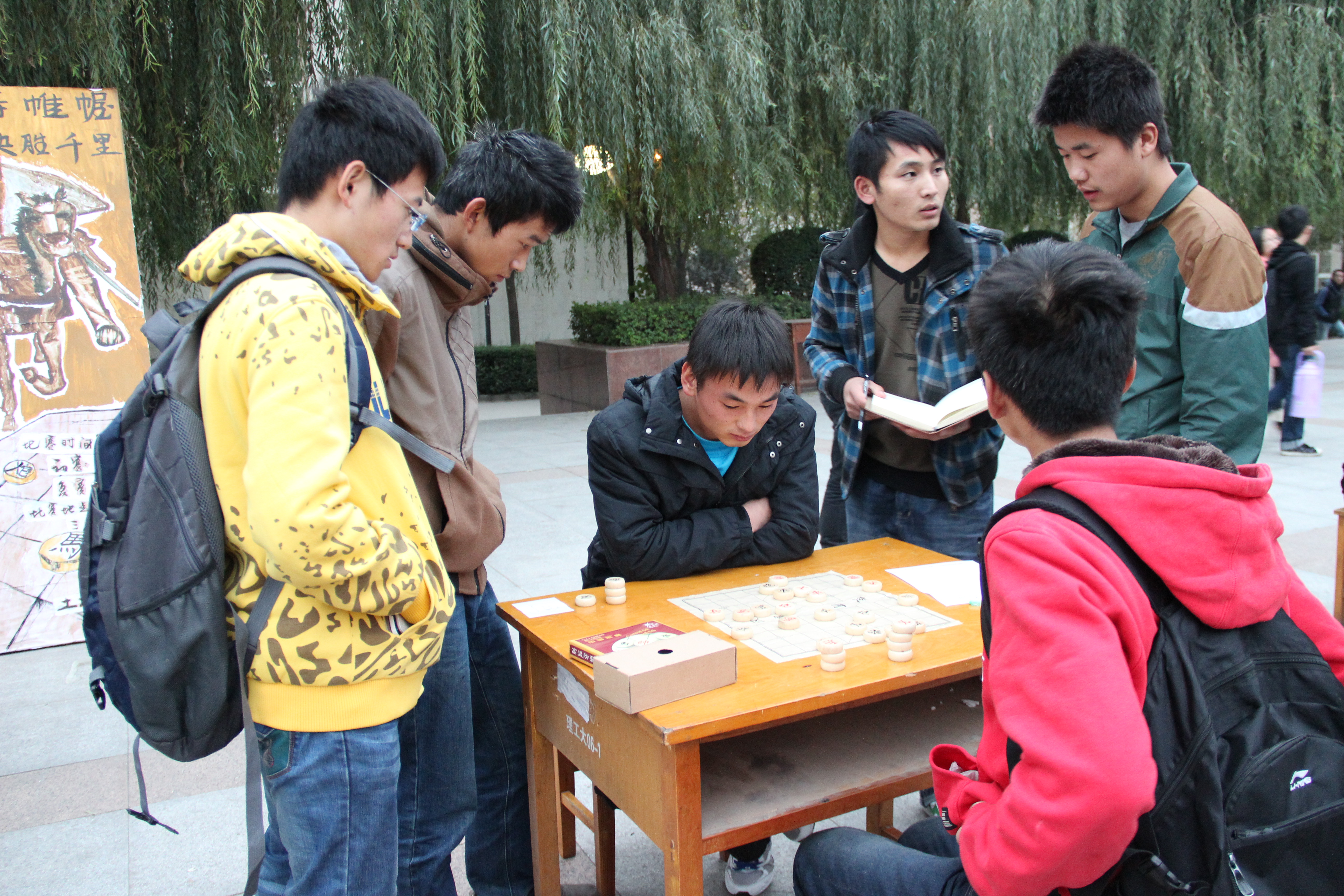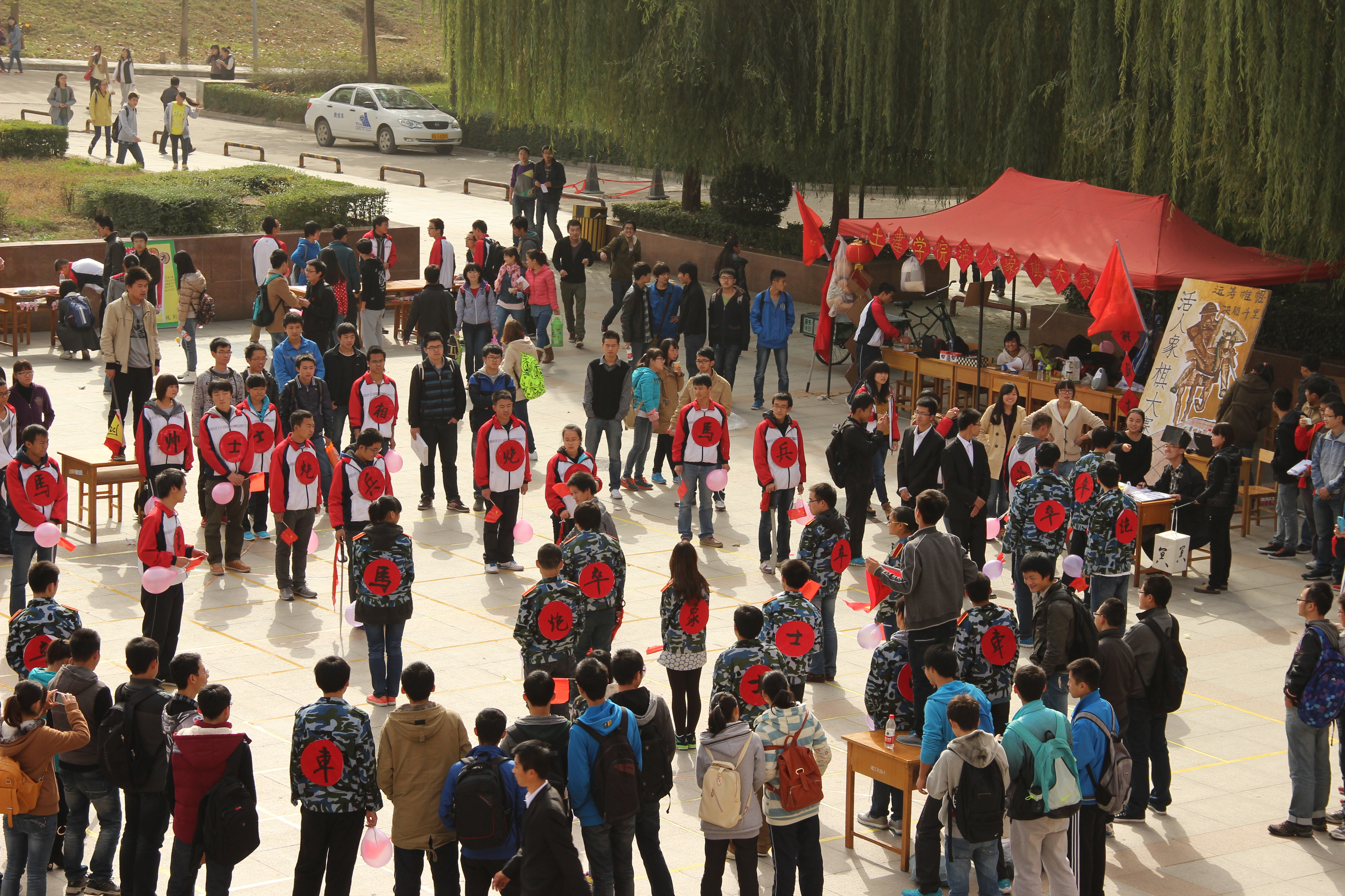 “情系棋间,棋乐无穷”。为了丰富校园生活,增强同学们的竞争与合作意识,提高我院学生身心素质,我院于2013年11月18日在曲江三期食堂前成功举办了“土木风华”系列活动活人象棋大赛。