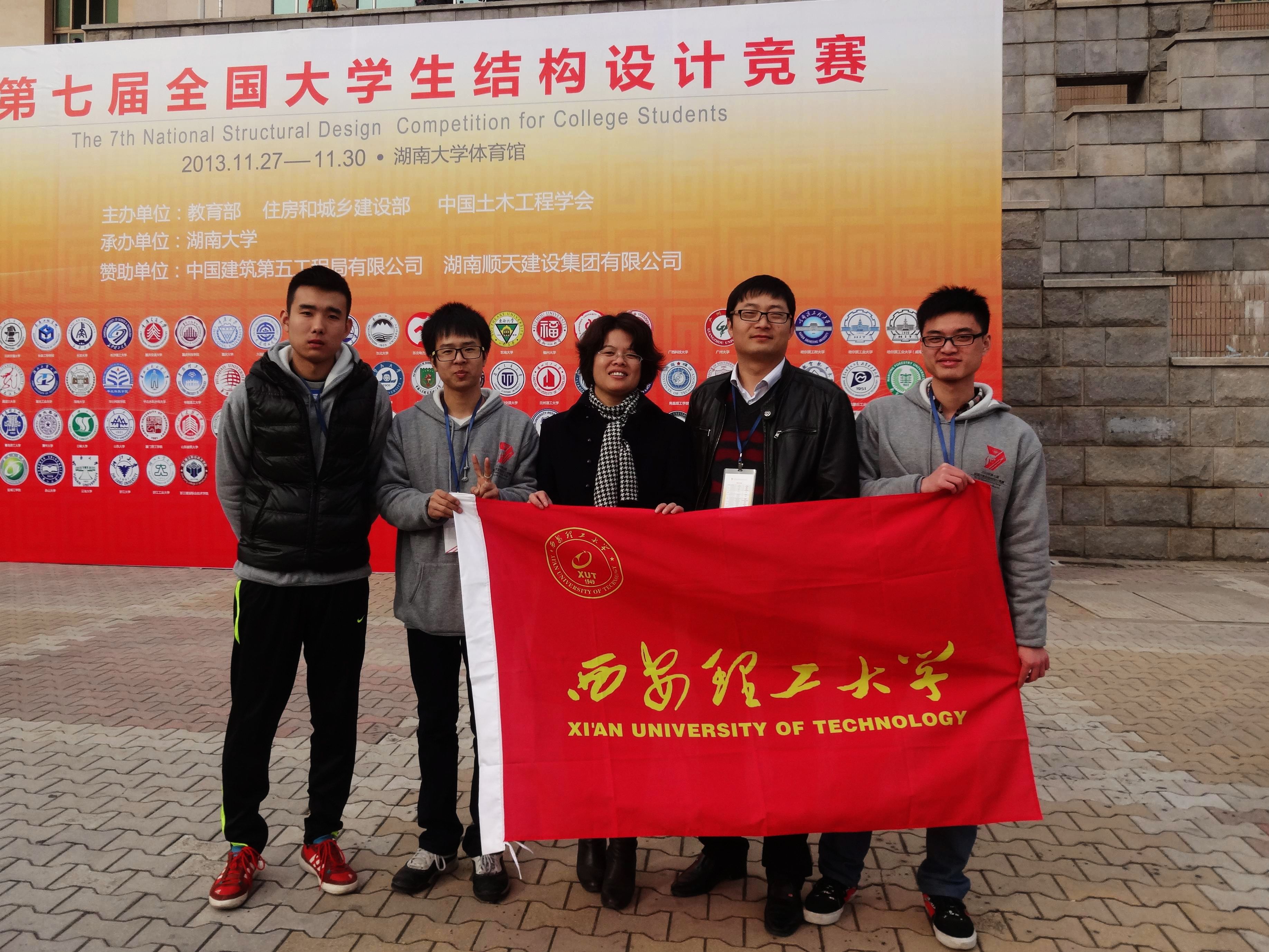 2013年11月27日至30日,第七届全国大学生结构设计竞赛在湖南大学举行,来自上海交通大学、清华大学、浙江大学、同济大学、澳门大学、美国南加州大学、西安理工大学等96所中外高校的近百支代表队参加大赛。我院3名学生代表学校组队参赛,获得本次大赛三等奖。