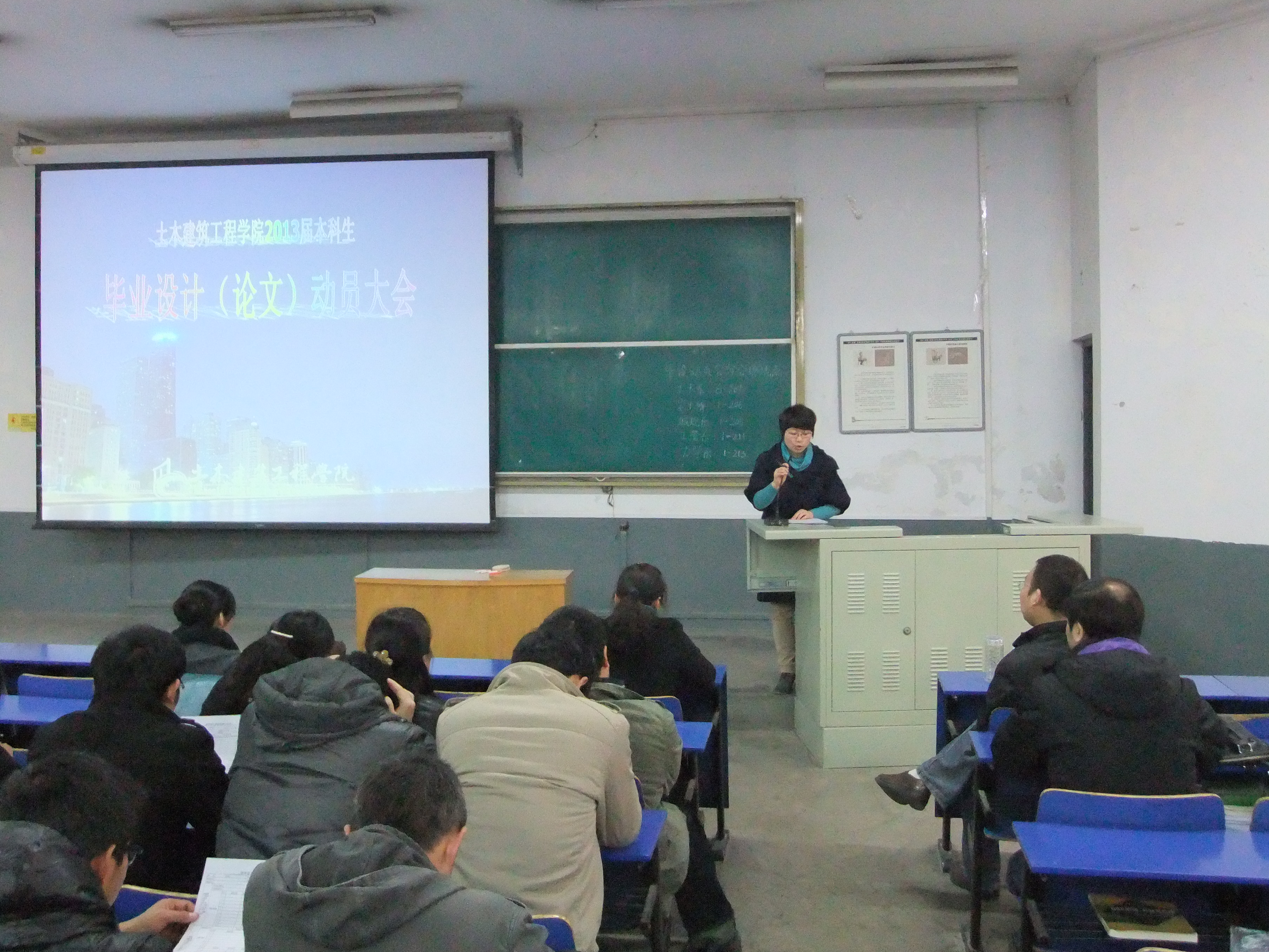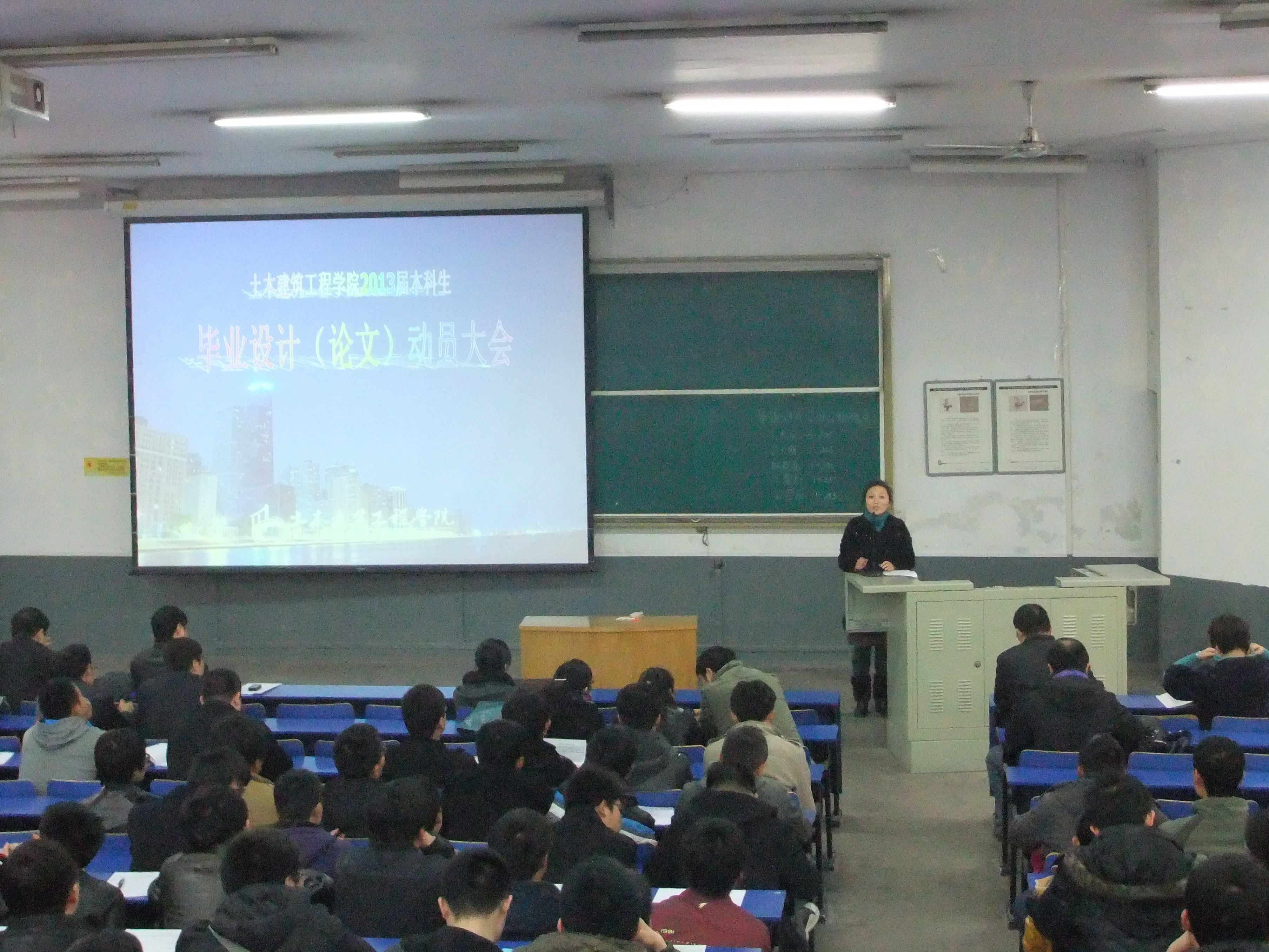 2013年2月27日14时30分,bat365中文官方网站2013届本科生毕业设计动员会在教6-401召开。副院长范留明、副书记李红英、综合办刘敏老师、毕业设计指导老师及2013届全体毕业生参加了大会。