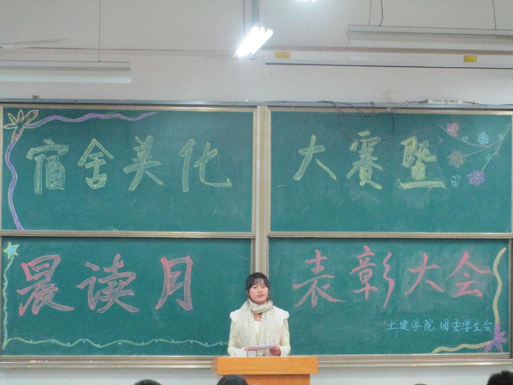 由我院团委学生会主办的“喜迎十八大,土木风华”系列活动——宿舍美化大赛暨晨读月活动颁奖大会于2012年11月5日晚在10-506顺利举办。我院学生会各部部长及2012级部分班干部参加了本次大会。