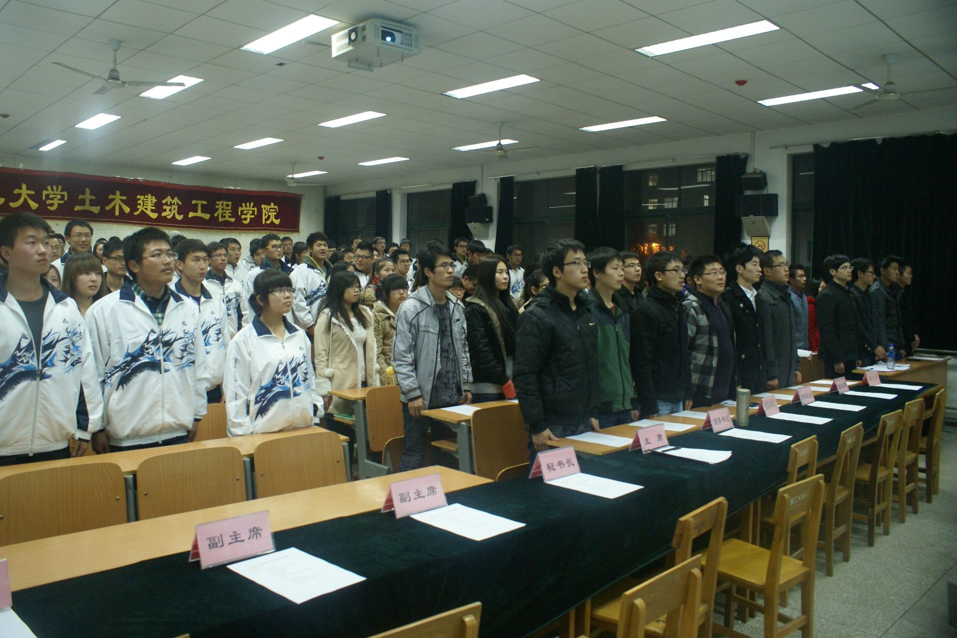 2012年12月10日晚7点,我院在10-204举行了2012年团委学生会表彰暨总结大会。团委书记王宗强老师、学生会主席团全体成员及学生会成员200余人出席了本次大会。