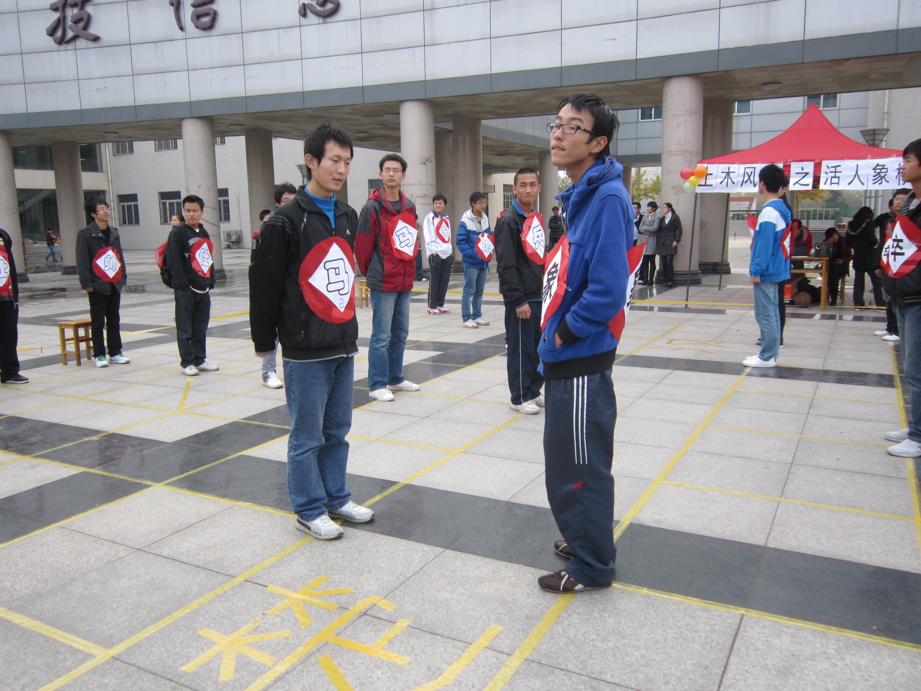 纹屏乐道,乐在其中,横车纵马,胜负你操。为了使同学们对象棋艺术得到进一步了解,丰富同学们对象棋文化的认识,创造一个人人喜爱棋艺术、棋文化的氛围。2011年11月16日至18日,由bat365中文官方网站团委学生会组织部主办的首届“土木风华”文化节之活人象棋大赛在三餐厅门口及逸夫科技楼前火热举行。