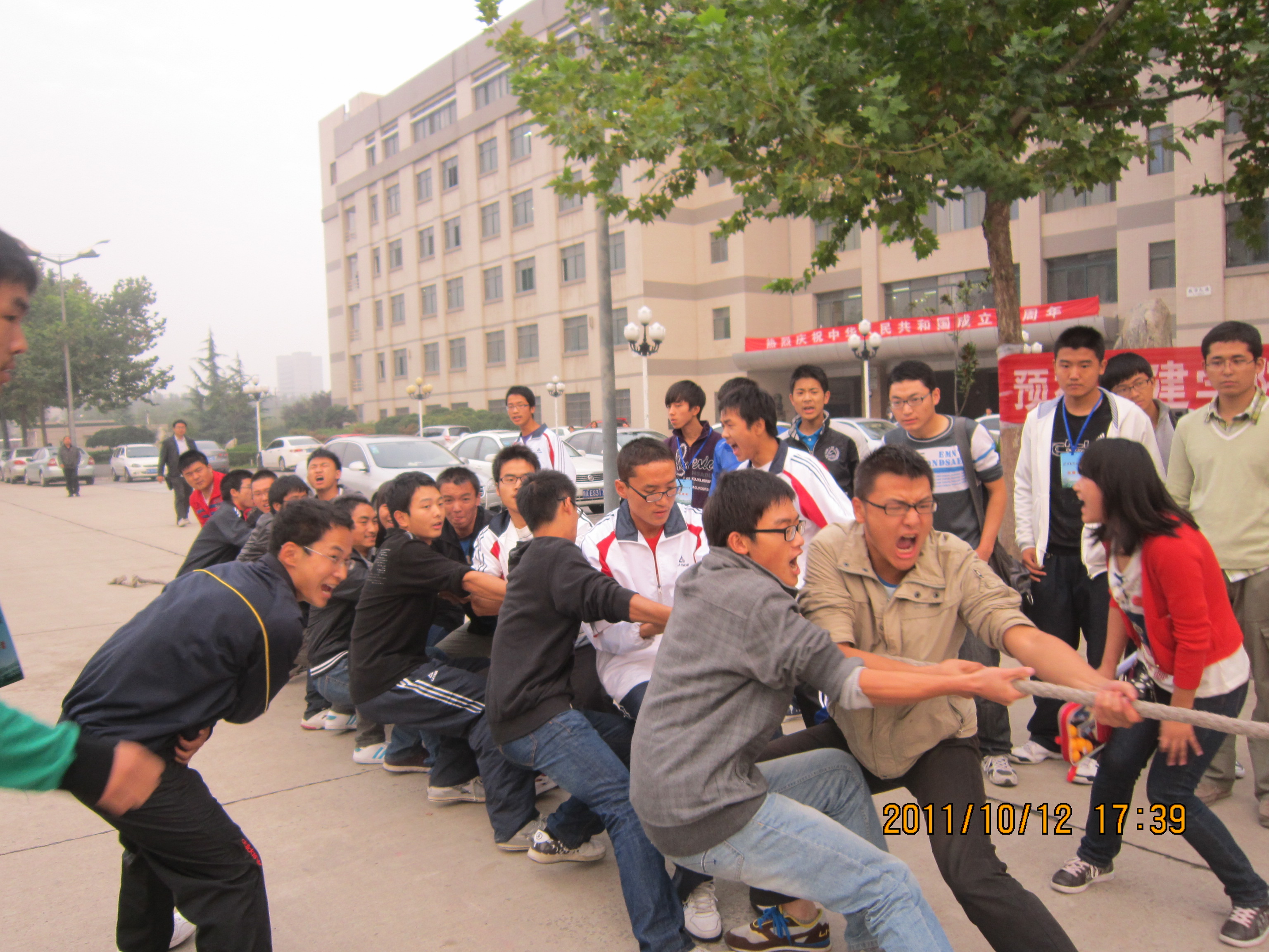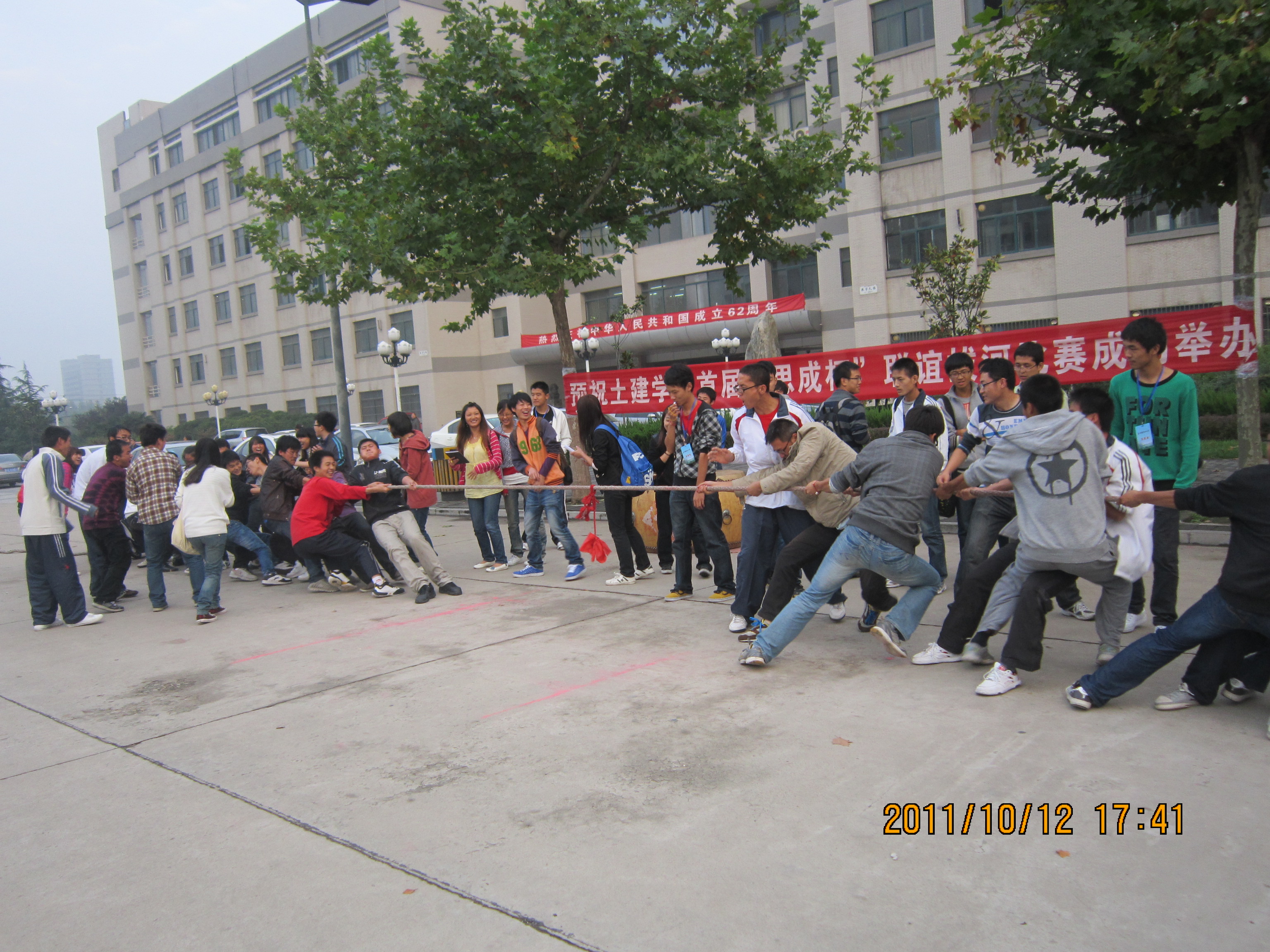 为加强bat365中文官方网站各个班级间交流与协作,增强班级凝聚力,传承“祖国、责任、荣誉”的使命,展现土木学院莘莘学子积极向上、勇往直前、奋发拼搏的青春风采,bat365中文官方网站2011级各班团支书联合发起、体育部承办的bat365中文官方网站首届“思成杯”联谊拔河比赛于2011年10月12日在校主干道上如火如荼地拉开帷幕。