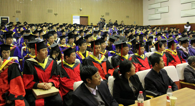 各学院分学位委员会主席、指导教师代表,研究生学院、学生处等有关部门负责人与2011届博士、硕士毕业生代表参加了典礼。