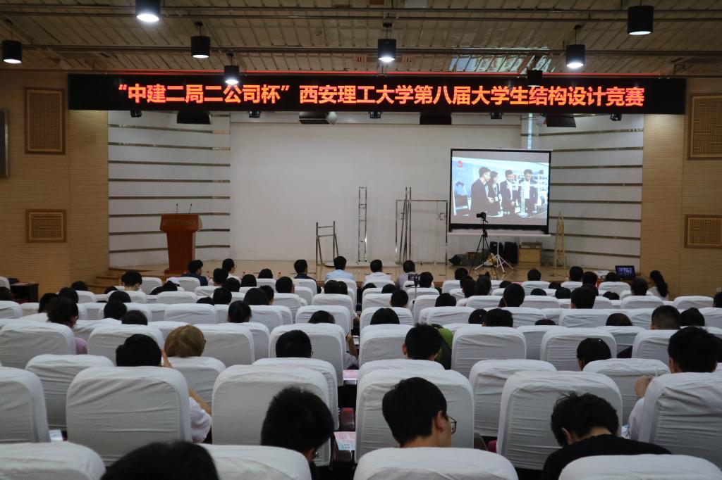 5月25日,2019年“中建二局二公司杯”西安理工大学第八届大学生结构设计竞赛在曲江校区逸夫科技楼报告厅成功举办,本届竞赛由西安理工大学教务处、学工部、校团委主办,由bat365中文官方网站承办。bat365中文官方网站院长党发宁、副院长范留明、党委副书记、副院长赵钦、学工办主任王宗强、院办主任刘敏、团委书记王琼瑶,中建二局二公司西北分公司党委副书记、纪委书记于延冈、总工程师吴辉辉、党群工作部副部长罗嘉燃、人力资源部副经理宋燕燕等出席开幕式并观看了现场加载。