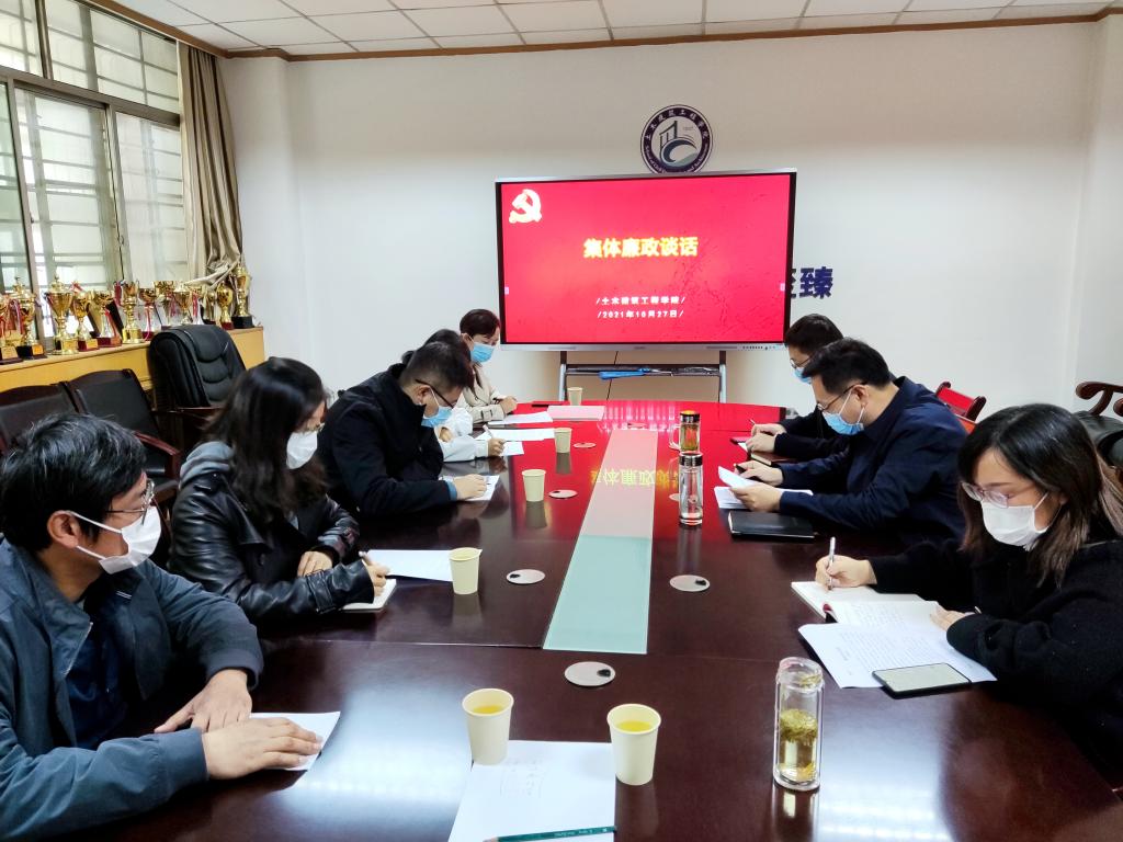 10月27日上午,bat365中文官方网站党委书记王青耀、院长朱记伟分别与院班子成员、科室(系、所)主要负责人、党支部书记开展干部集体廉政谈话。