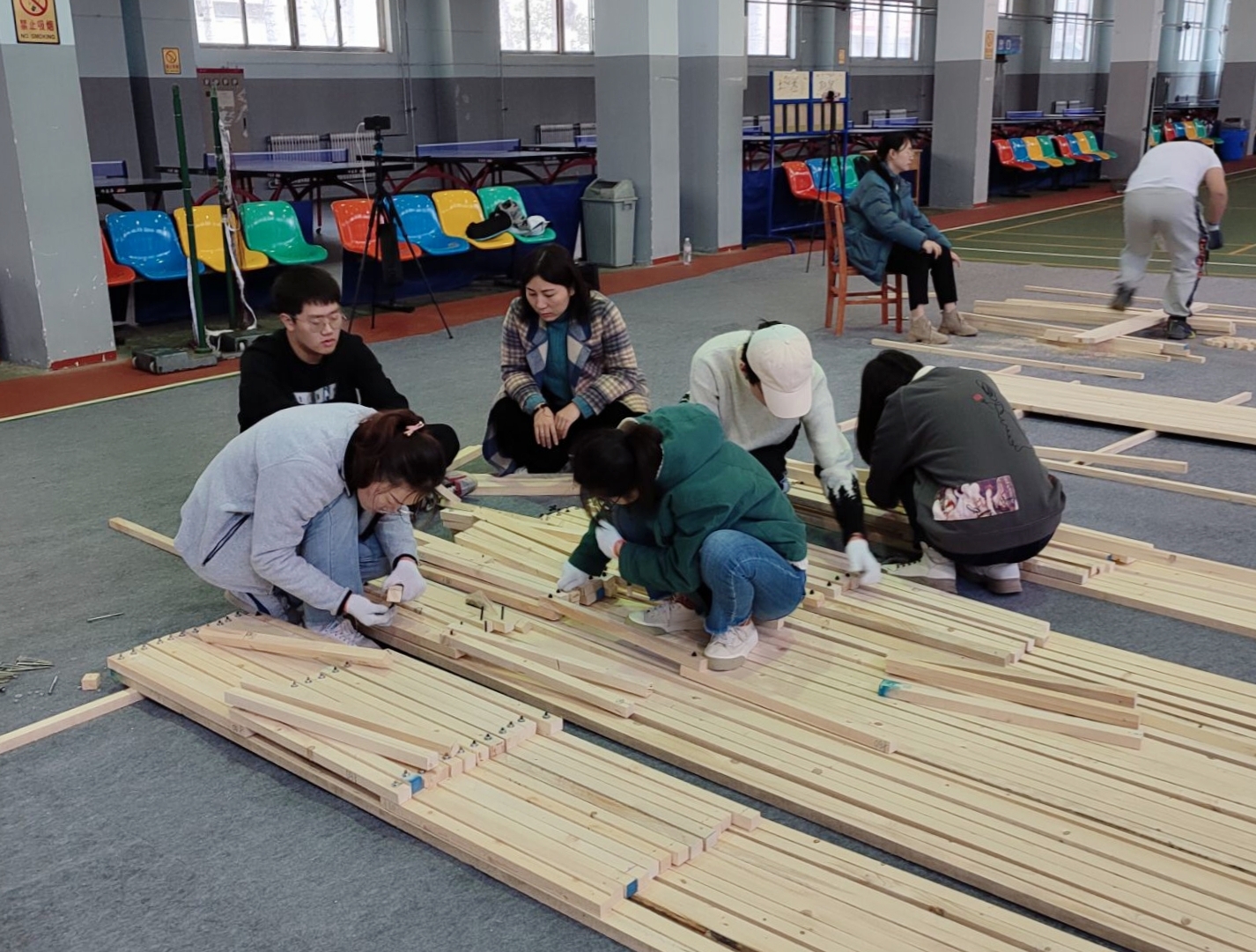 该竞赛旨在让学生在实际建造过程中更深刻地理解建筑美学,结构、材料、构造与空间的关系。本次竞赛主题为:移动的棚屋Moving Hut。自五月初,比赛即已开始,但因疫情导致赛期延长,赛场更改,这一系列问题为整个设计过程增添了不小的难度。我院建规系参赛学生在院系领导支持下和带队教师的悉心指导下,精心准备,两支队伍提前完成设计方案并进行测试。29日郭宏超进行了现场指导并主持开幕,比赛过程中,参赛组克服重重困难以最饱满的状态顺利完成了竞赛,并取得了良好的成绩。席鸿老师指导的崔玉,张琦,田利婷,刘丽丽,王雨秋,马泽旭等6名同学的作品“麦田守望者",获得二等奖;杨帆老师指导的高佳婷,左起超,傅贤文,冯源,许珩玥,熊杰等6名同学的作品“麦陇风来”,获得三等奖。此次竞赛,我校代表队在几十支比赛队伍中脱颖而出,两支队伍斩获十个获奖名额的两个。虽此次比赛与一等奖仅毫厘之间,但参赛队获奖率100%,在所有参赛队伍中拔得头筹,实现了我校参加该项赛事以来获奖等级及数量上的历史性突破。