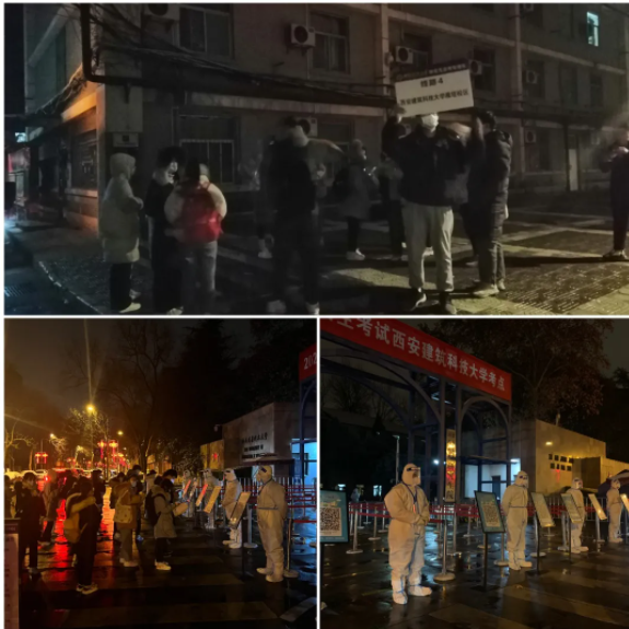 校外线路:在校外考点的考生,共计分为20条专线。学院派出一名辅导员负责4号线路,前往西安建筑科技大学雁塔校区考点,总计20人。每天早晨5:50集合,6:00出发,把学生送到之后,待所有学生在群内回复已进校区没有问题后才返回。在考试即将结束前就抵达考点提前等候,确保将所有考生安全带回。