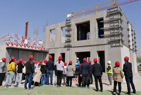 中建四局西北公司西安分公司相关负责人对各位老师和学生到来表示热烈的欢迎,介绍了公司及项目相关情况,希望通过现场调研能够更好地将教学理念与施工现场充分融合,为项目后续施工生产给予宝贵技术支持。随后,三一云城项目技术负责人介绍了项目概况、SPCS装配式体系及其施工工艺,并带领师生到三一筑工构件厂及现场实验楼参观调研了构件生产线及现场施工工艺。