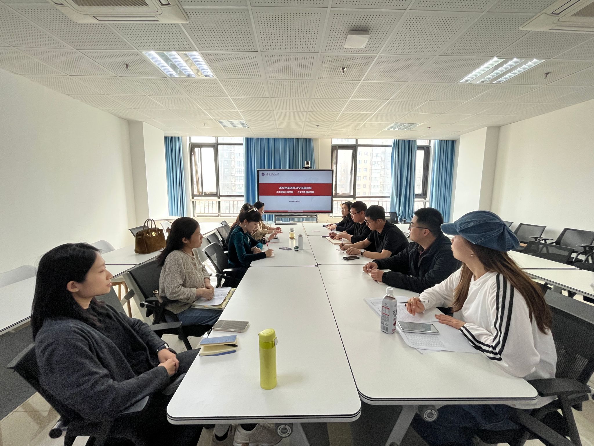 为深入了解学生英语学习需求,提高学生英语学习效果,4月10日下午,学院辅导员、学生代表与人文与外国语学院外语二部教师代表宋雨晨、黄晓梅、李宇清、李银玲、张懿文在综南楼806进行交流座谈。