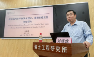 报告会上,刘耀儒围绕复杂岩体结构稳定与控制问题,提出“工程扰动”概念,揭示了岩体结构的非平衡演化机制,指出了损伤演化的驱动力为损伤内变量的热力学共轭力,构建了岩体结构非平衡演化理论,并提出以能量释放率及其域内积分作为岩体局部破坏与整体稳定的定量评价指标。进一步通过数据-机制融合的代理模型开展库岸边坡时效分析,建立了基于多测点变形过程的多力学参数反演方法,并提出结合抗滑稳定与可靠度演化的边坡变形预测预警方法。