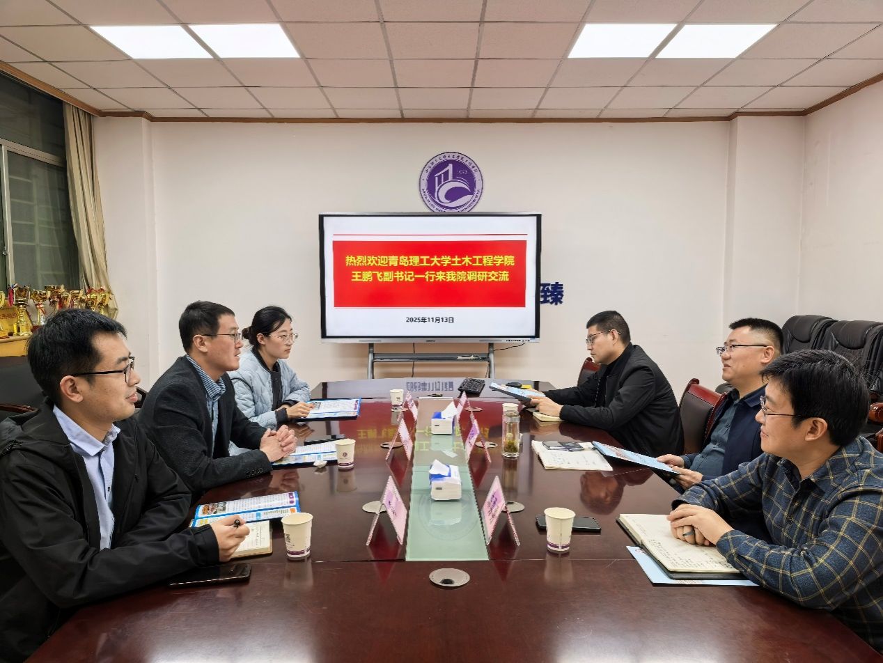 11月13日下午,青岛理工大学土木工程学院党委副书记、副院长王鹏飞一行来bat365中文官方网站调研交流。学院党委副书记兼副院长王宗强、学工办主任陈勇勇和团委书记刘杰参加座谈。座谈会由王宗强主持。