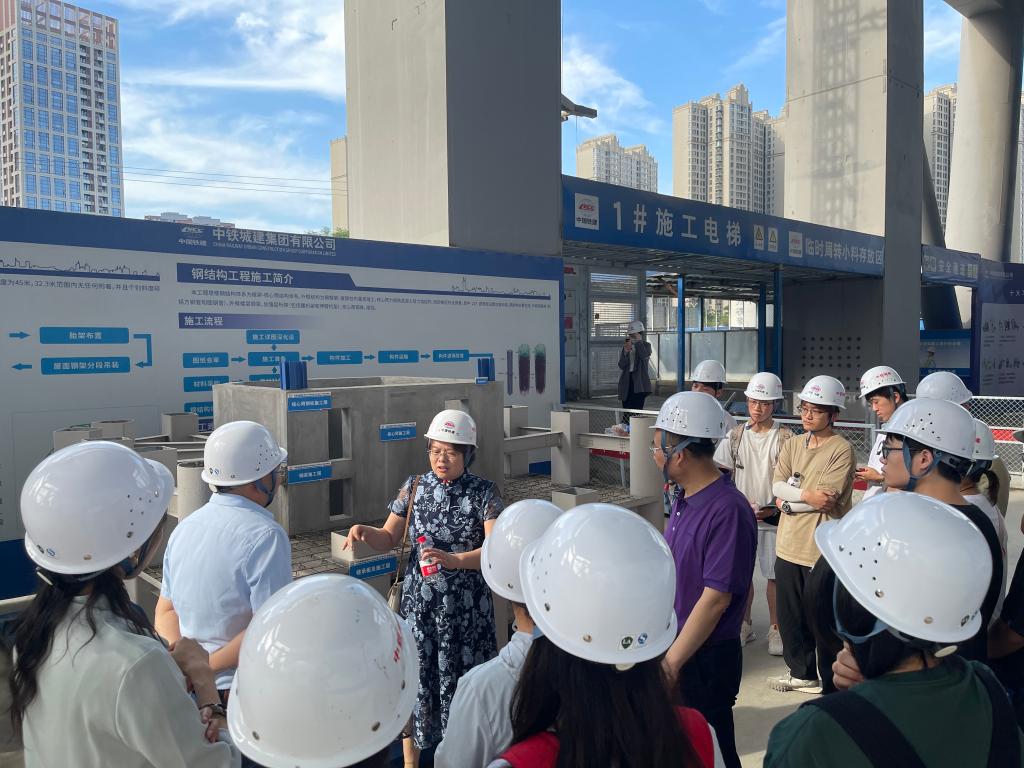 为深入推进实践育人工作,加强校企合作交流,6月7日下午,学院师生赴中铁城建集团第一工程有限公司西安曲江文创中心项目部开展实践学习活动。学院教师范留明教授、潘秀珍副教授,2022级辅导员王端藓、孙东宇及各专业70余名学生代表参加了本次活动。西安曲江文创中心项目总工程师杨建军、副经理李挺、副总工程师侯维、安装经理张凯等企业领导出席了本次活动。