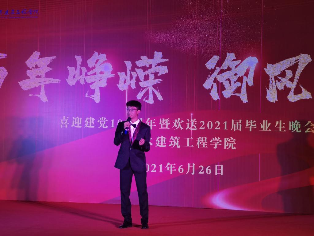 为迎接建党100周年、欢送2021届毕业生,主题为“百年峥嵘 御风新程”的毕业生晚会于6月26日晚8点在金花校区足球场成功举办。学院副院长赵钦、副院长胡义锋、党委副书记兼副院长王宗强、院办主任刘敏、院团委书记王琼瑶以及部分师生共同观看了晚会。