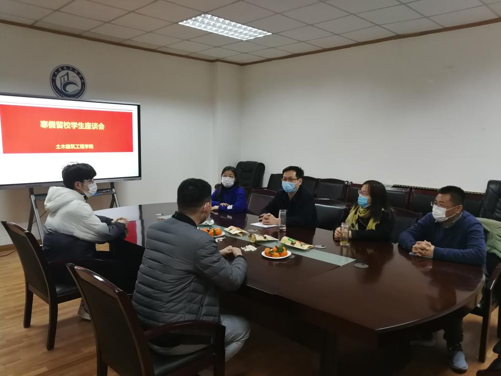 2月8日上午,bat365中文官方网站在会议室301与寒假留校学生座谈。院长朱记伟、副院长赵钦、院办主任刘敏、学工办主任王宗强、辅导员李江参加。