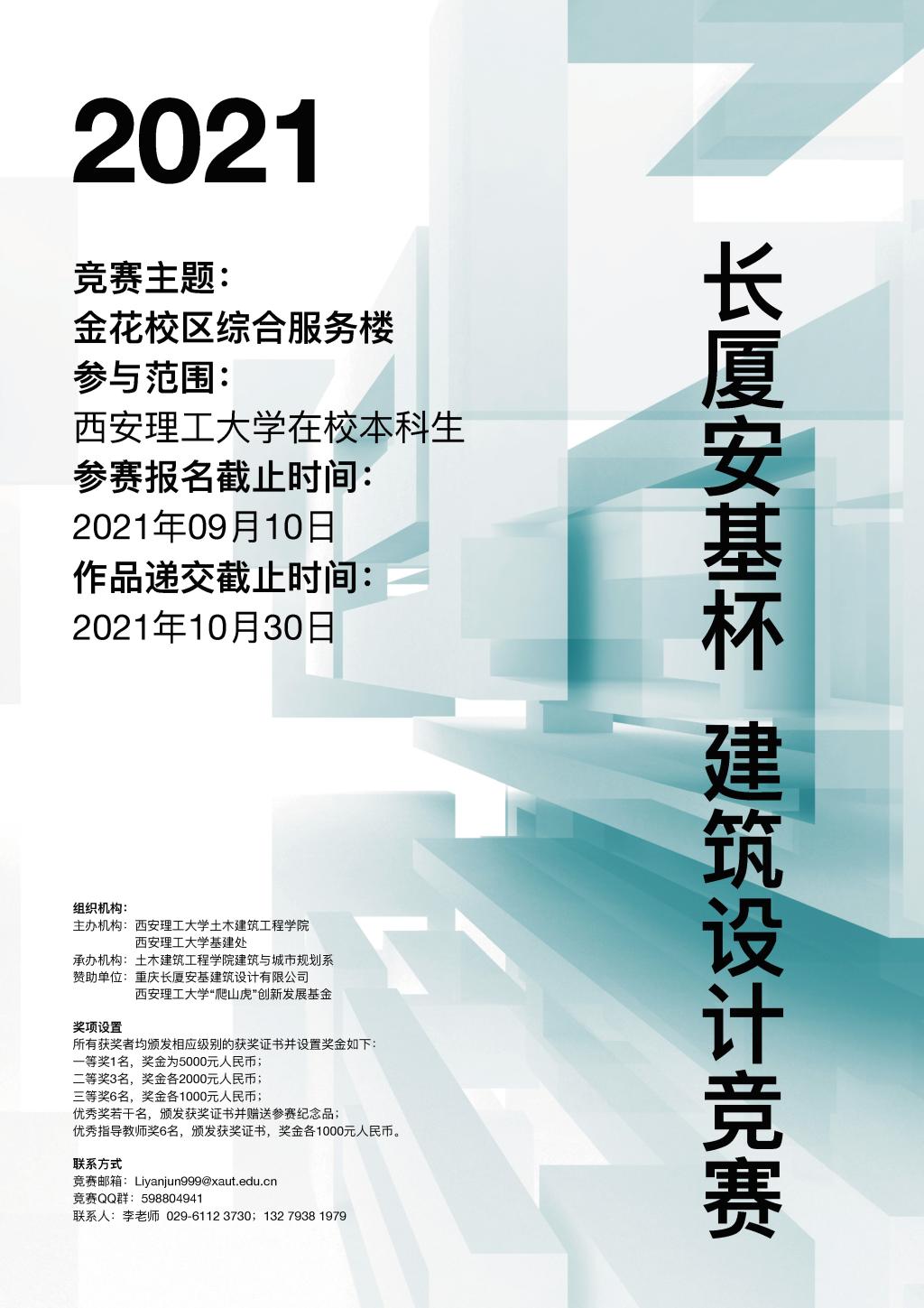 西安理工大学2021“长厦安基杯”建筑设计竞赛以我校基建处拟建实际工程项目为题,邀请和组织相关专业的本科生参加建筑设计竞赛,让大学生在实际工程项目中运用所学理论知识一展身手。通过建筑设计竞赛,培养学生严谨认真的学习态度、精诚合作的团队意识与精益求精的工匠精神,激发学生勇于担负社会发展使命的勇气。