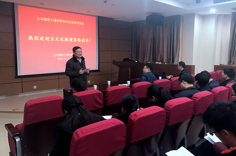 2016年12月1日上午,应学院邀请,兰州理工大学王文达教授在我校金花校区学科二号楼报告厅作了题为《钢管混凝土组合结构在现代结构工程中的研究和应用新进展》的学术报告。我院土木系教师、博士、硕士研究生等百余人参加了此次报告会。会议由院长党发宁教授主持。