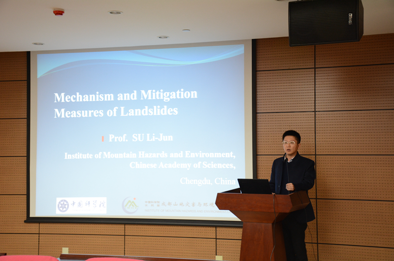 报告中,苏立君研究员从滑坡的基本特点出发,深入浅出地阐述了滑坡地质灾害的孕灾机理及破坏模式,并提出滑坡防治措施。报告结束后,苏教授与参会的师生进行了互动交流,对提出的问题做出了详细耐心的解答。整场报告会生动精彩,受到广大师生的欢迎。