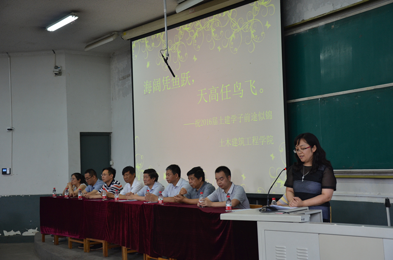 7月7日9点30分,bat365中文官方网站在金花校区教6-501成功召开了2016届本科生毕业典礼暨学位授予仪式。院长刘云贺、院党委书记党发宁、院党委副书记兼副院长赵钦、副院长朱记伟、院长助理胡义锋、院办主任王伟、教学科主任刘敏和简政、邵生俊、张志强等教师代表、全体辅导员以及2016届毕业生参加了此次典礼。毕业典礼由院党委副书记兼副院长赵钦主持。