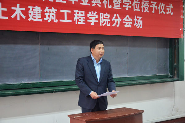 随后,桑国臣副教授作为导师代表在典礼上发言,希望同学们能够坚守住自己内心的梦想,一如既往的不断进取、开阔胸怀;身怀感恩之心,为人处世;让青春的火焰永远燃烧,让年轻的生命永远阳光。