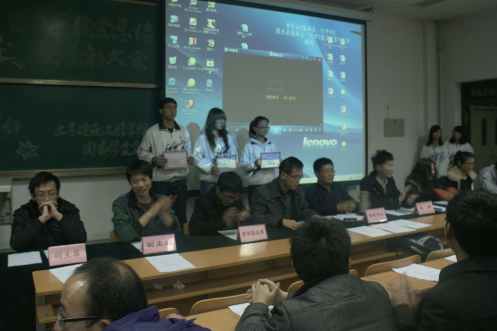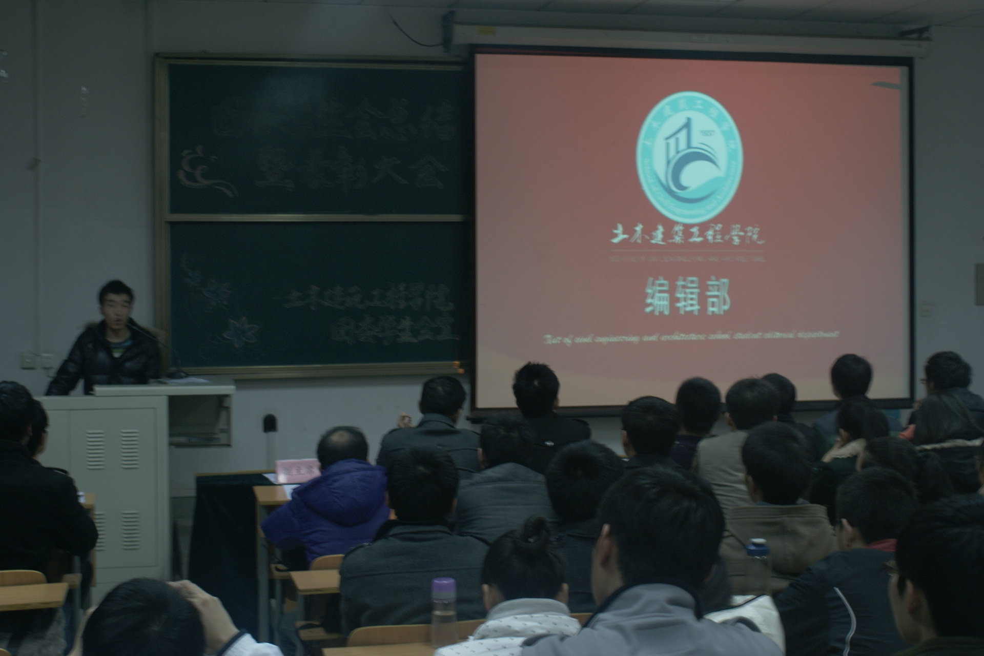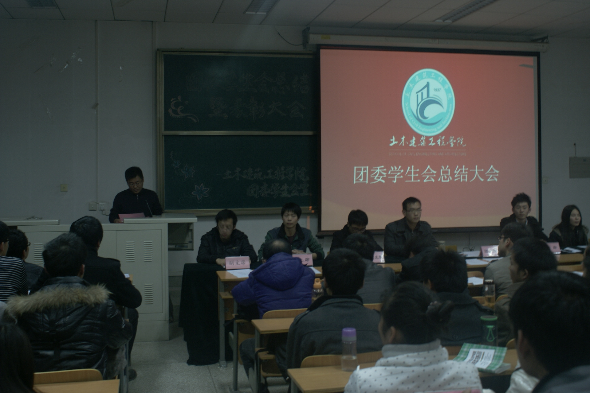 伴随着共青团团歌的奏响,大会正式拉开帷幕。会上,我院团委学生会各部门依次做了部门总结PPT演讲,不仅展示了部门组织参与的各项活动,而且充分反映了各部门的精神风貌,并在汇报部门工作的同时,显示了各部门2013年的计划。之后,王宗强老师宣读了关于表彰2012年土建学院团委学生会优秀学生干部、优秀干事的决定,并为他们颁发了证书。接着学生会主席梁彬详细汇报了学生会本年度的各项工作,并对明年的工作进行了展望。最后,王宗强老师做了总结性发言,他对我院2012年我院学生会取得的成绩和突破给予了高度评价和充分肯定,同时就明年的工作提出了建议。