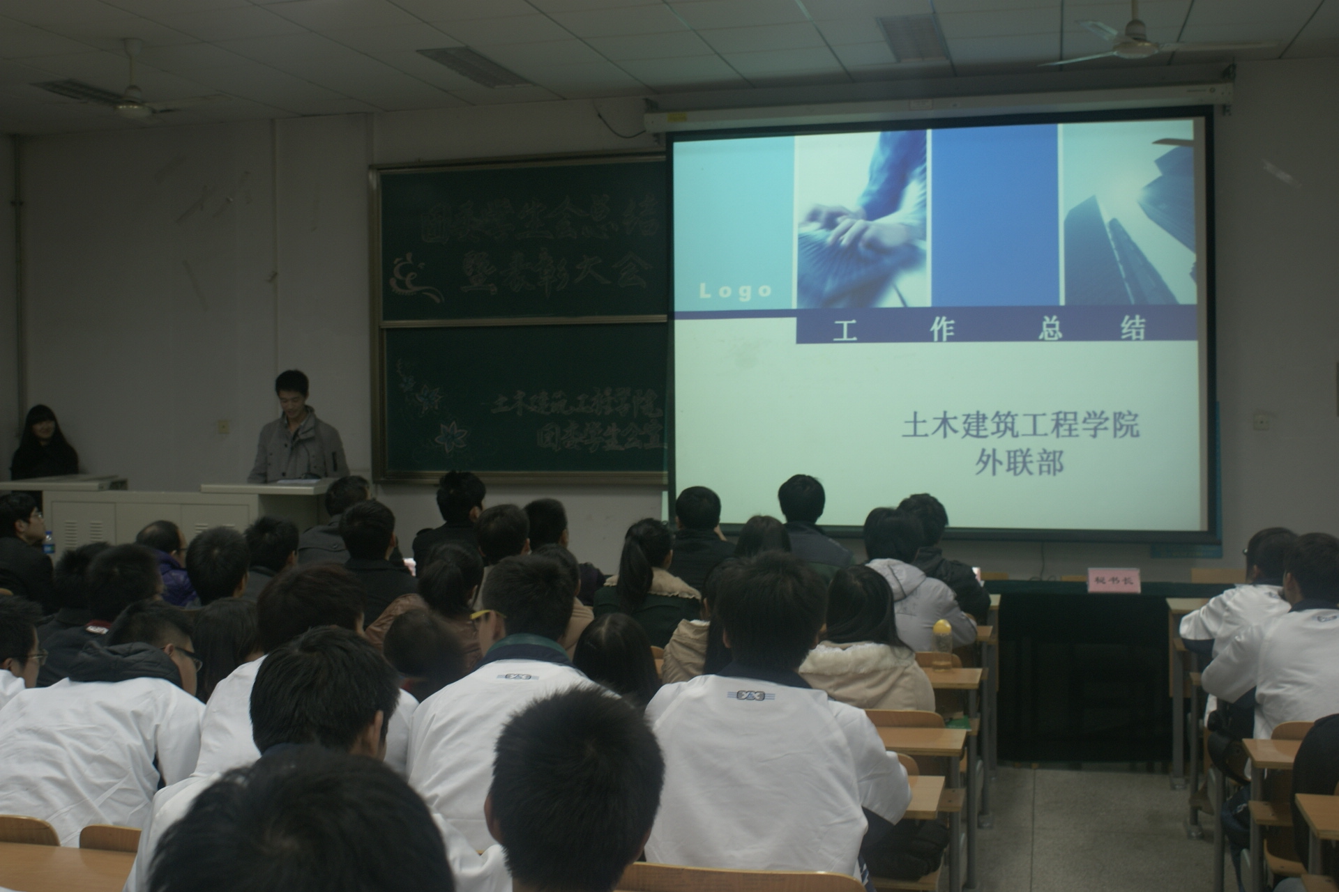 2012年12月10日晚7点,我院在10-204举行了2012年团委学生会表彰暨总结大会。团委书记王宗强老师、学生会主席团全体成员及学生会成员200余人出席了本次大会。