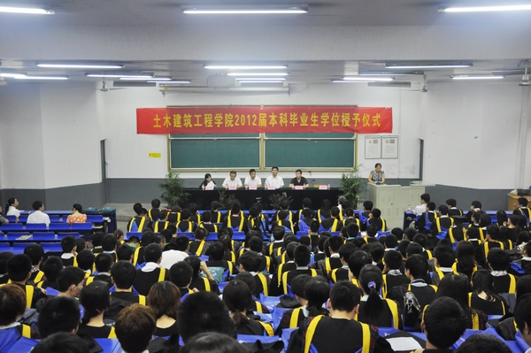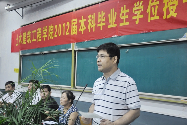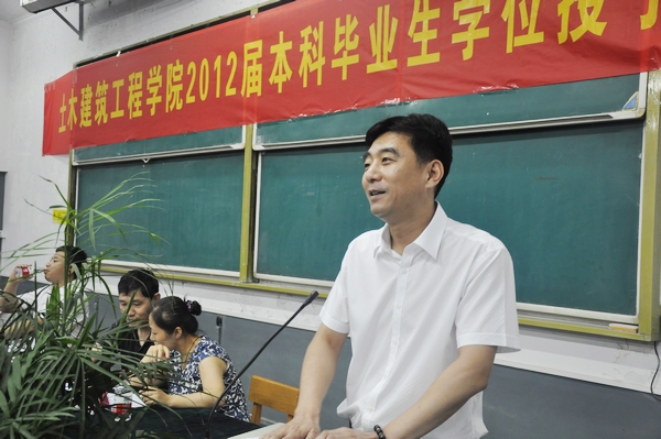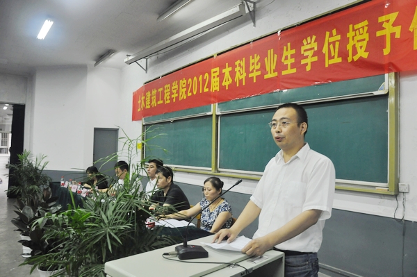 bat365中文官方网站2012届本科生毕业典礼暨学位授予仪式于7月4日早晨9:30在教6-401举行。参加仪式的嘉宾及领导有:杰出校友代表、西安高新建设监理有限责任公司董事长范中东先生,院党委书记、博士生导师师俊平教授,院长、博士生导师刘云贺教授,副院长范留明教授,院党委副书记李红英老师、院长助理赵钦老师。