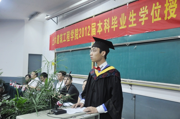 首先刘院长发表了热情洋溢的讲话,为毕业生提出了四点希望:第一,希望同学们不断学习。第二、希望同学们勇于进取创新。第三、希望同学们一定要热爱自己的本职工作,做到“成人成才”。最后,希望同学们走出校门以后,不要忘记理工大学、不要忘记土建学院,常回母校看看。