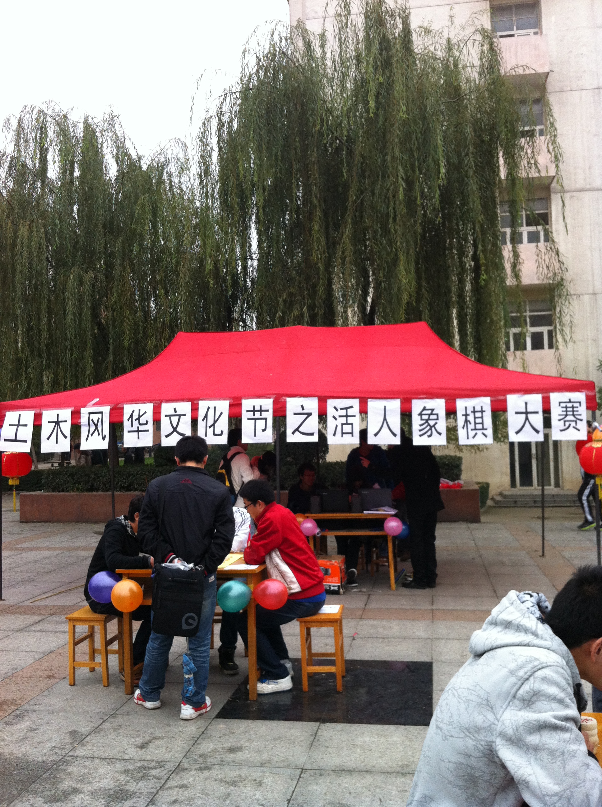 纹屏乐道,乐在其中,横车纵马,胜负你操。为了使同学们对象棋艺术得到进一步了解,丰富同学们对象棋文化的认识,创造一个人人喜爱棋艺术、棋文化的氛围。2011年11月16日至18日,由bat365中文官方网站团委学生会组织部主办的首届“土木风华”文化节之活人象棋大赛在三餐厅门口及逸夫科技楼前火热举行。
