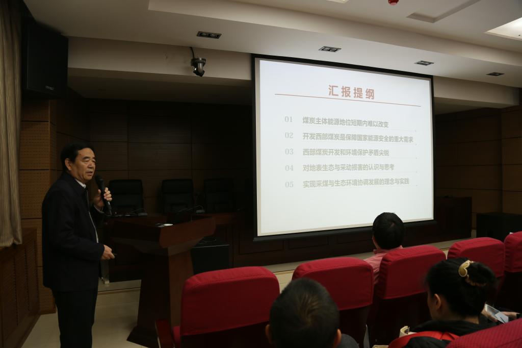 王双明院士的报告从煤炭开发与生态环境保护的关系出发,结合西部脆弱的生态环境和长期致力于矿区生态环境保护方面的研究工作及创新性成果,重点介绍西部煤炭开发面临的挑战性问题,并对西部煤炭开发与生态环境保护问题提出了思考和建议。报告会后,王院士与我校岩土工程、土木工程、力学等相关学科教师深入交流,对我校相关学科的建设和发展提出了宝贵意见。