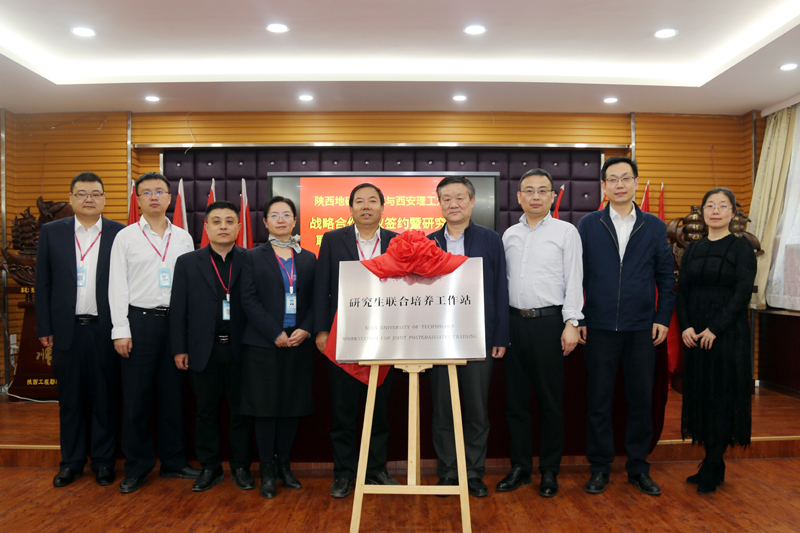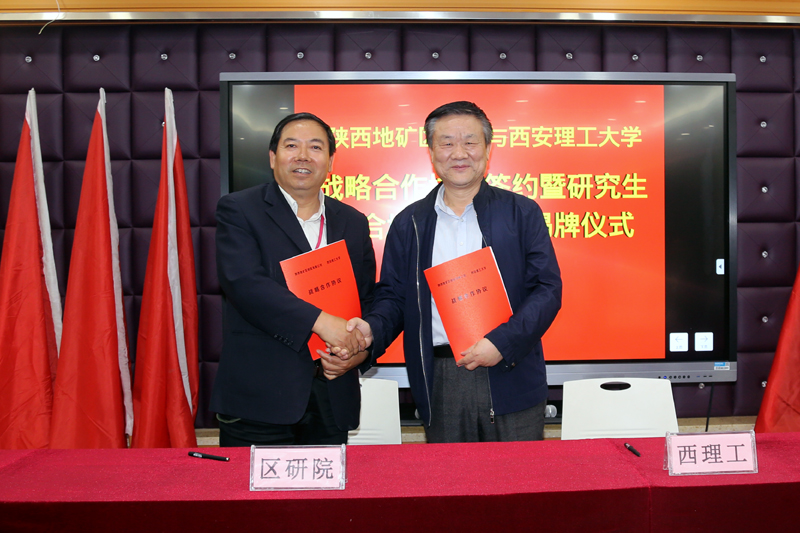 陕西地矿区研院有限公司党委副书记、总经理宋化清代表单位对西安理工大学土建学院领导的到来表示欢迎,并介绍了公司生产经营、人才队伍、工作范围及业务情况。党发宁院长就学校、学院的历史发展、办学规模、人才培养、科学研究及社会服务等方面向地矿区研院的参会领导做了介绍。期间,双方针对科研项目合作、研究生联合培养以及技术培训等问题进行了深入地交流与探讨,共同签订了产学研战略合作协议,并为研究生联合培养工作站揭牌。仪式结束后,党院长一行还参观了区研院地质采样陈列馆,与优秀校友代表进行了座谈。