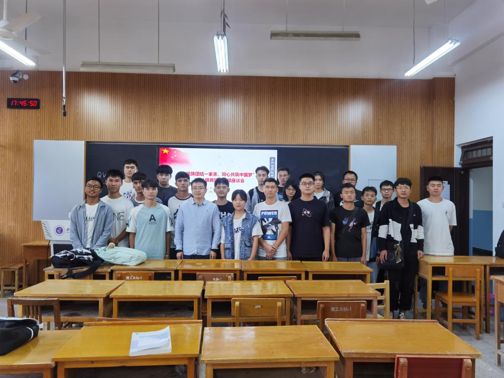 座谈伊始,刘宇航介绍了本次座谈会的目的及意义,希望同学们能够相互交流、相互沟通、相互帮助,共筑民族情。随后,与会同学分别就自己在学业、生活等方面的体会以及存在的困惑进行了交流。其中,我院2021级研究生阿卜来则孜·奥斯曼江、晁欢两位同学结合自己在学习、工作、科技创新等方面取得的成绩进行了经验分享。最后,朱宏涛逐一解答了同学们的疑惑,希望同学们能够坚定理想信念,当好新时代民族团结的践行者、促进者、守护者,珍惜大学的宝贵时光,不断提升自己的综合素质,争做新时代的“四有”青年。