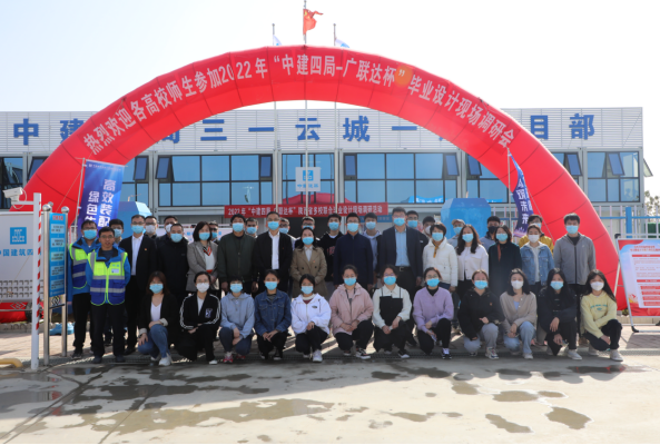 会上,大赛组委会授予三一云城项目“陕西省工程管理专业多校联合毕业设计实习实践基地”,参加现场调研的高校教师代表、中建四局西北公司西安分公司、广联达软件股份有限公司西安分公司相关负责人共同为基地揭牌。