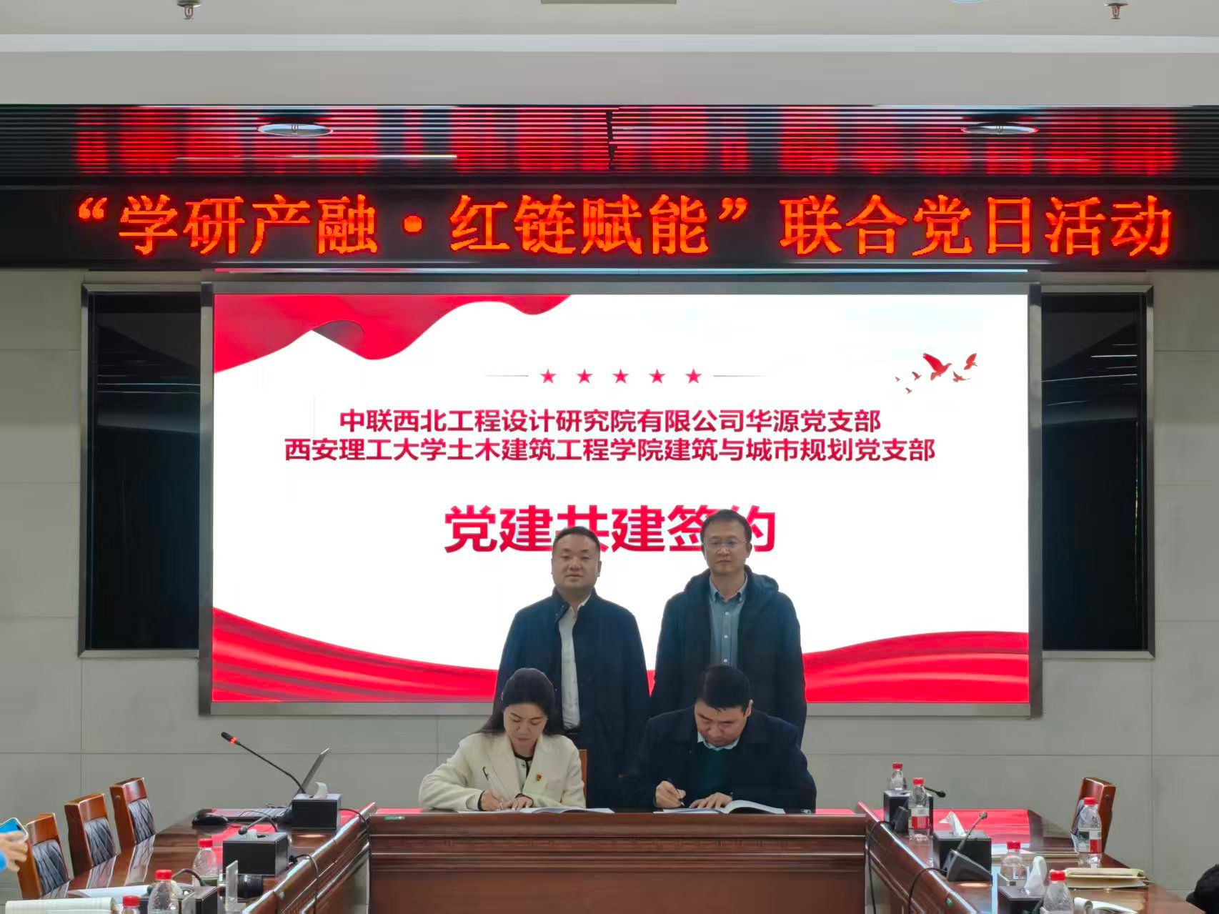 2025年11月25日下午,一场以“学研产融·红链赋能”为主题的联合党日活动,在中联西北工程设计研究院举行。中联西北工程设计研究院有限公司华源党支部书记兼华源院院长左森文,bat365中文官方网站党委书记刘峰,建规党支部书记李延俊以及建规党支部党员代表参加了本次活动。