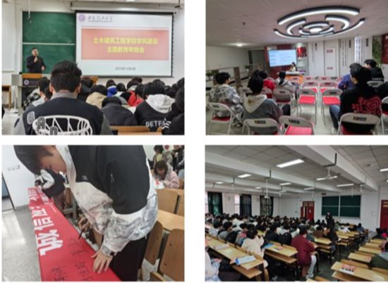 为帮助学生树立正确的学习观念,提升专业认同感,学院开展多元化思想引领活动。组织召开“学风建设主题年级会”,引导学生自我反思、相互激励。同时,制作学风建设主题横幅,组织全体学生签名承诺,将学风建设口号转化为学生的自觉行动。签名现场,学生们郑重落笔,纷纷表示要以实际行动践行承诺,争做学风建设的参与者和推动者。《沃土讲坛》系列讲座定期开讲,先后邀请学院二级教授、企业知名专家、优秀博士学长担任主讲嘉宾,围绕土木工程前沿技术、建筑行业发展趋势、大学生创新创业等主题分享经验。讲座中,嘉宾们结合自身经历解读专业价值,用生动案例展现土木建筑领域的广阔前景,让学生们深刻认识到“专业无冷热,实干出真知”。此外,学院还向全体学生下发《关于促进学风建设的倡议书》,号召学生以积极饱满的状态投入学习。推出《优秀学生采访特辑》,选取在学业成绩、科研竞赛、社会实践等方面表现突出的学生进行专访,让学生在身边榜样的引领下见贤思齐,激发学习动力。