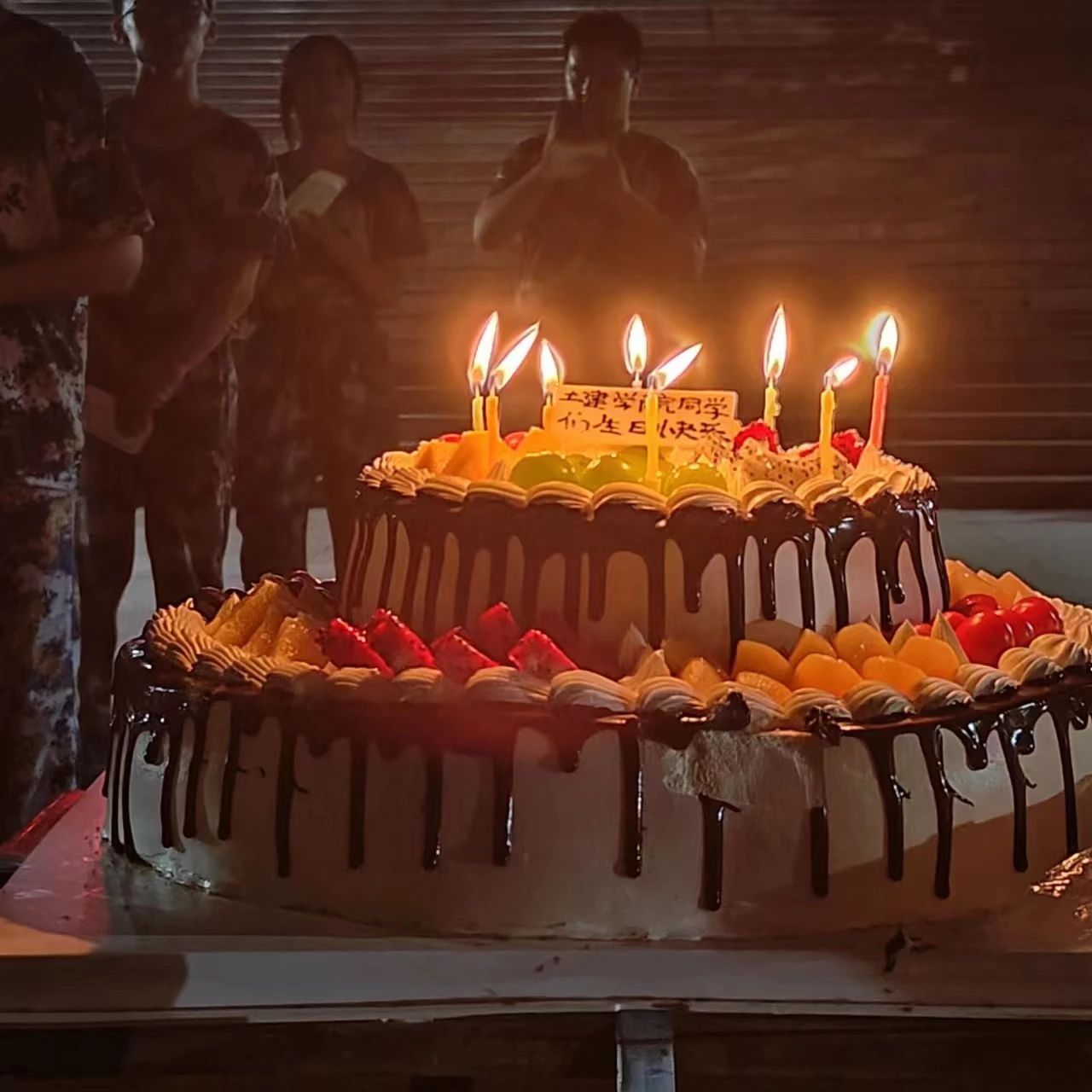 在联谊会的中间环节,教官和学长为学生们分发了西瓜,学生们吃得津津有味,场面十分热闹。同时,学院还为近期过生日的同学们准备了一个巨大的蛋糕,同学们纷纷为过生日的同学送上了祝福,并一起分享了这个美味的蛋糕。