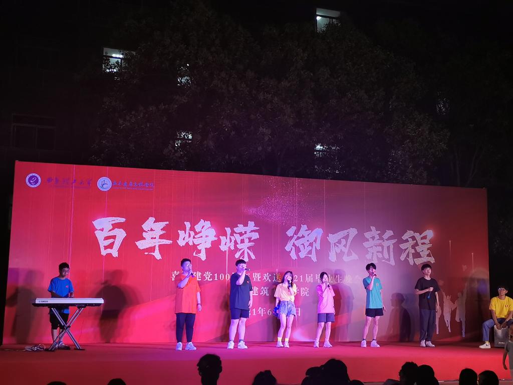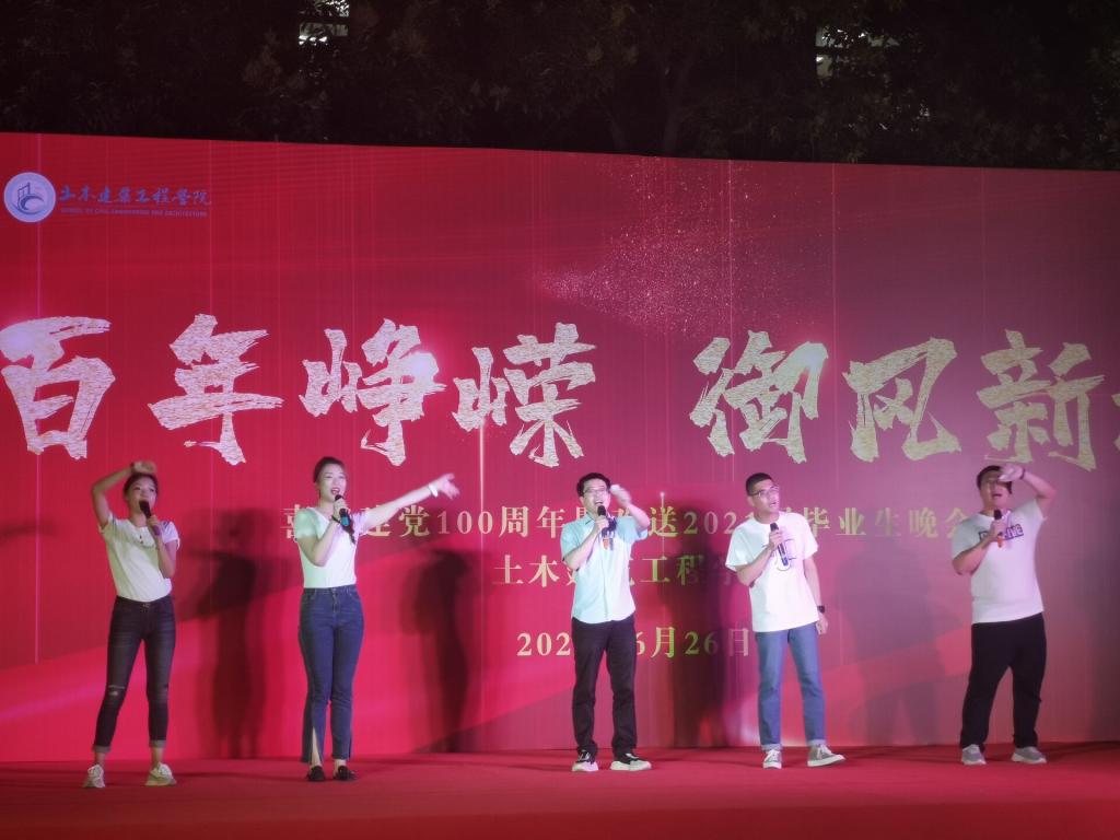 为迎接建党100周年、欢送2021届毕业生,主题为“百年峥嵘 御风新程”的毕业生晚会于6月26日晚8点在金花校区足球场成功举办。学院副院长赵钦、副院长胡义锋、党委副书记兼副院长王宗强、院办主任刘敏、院团委书记王琼瑶以及部分师生共同观看了晚会。