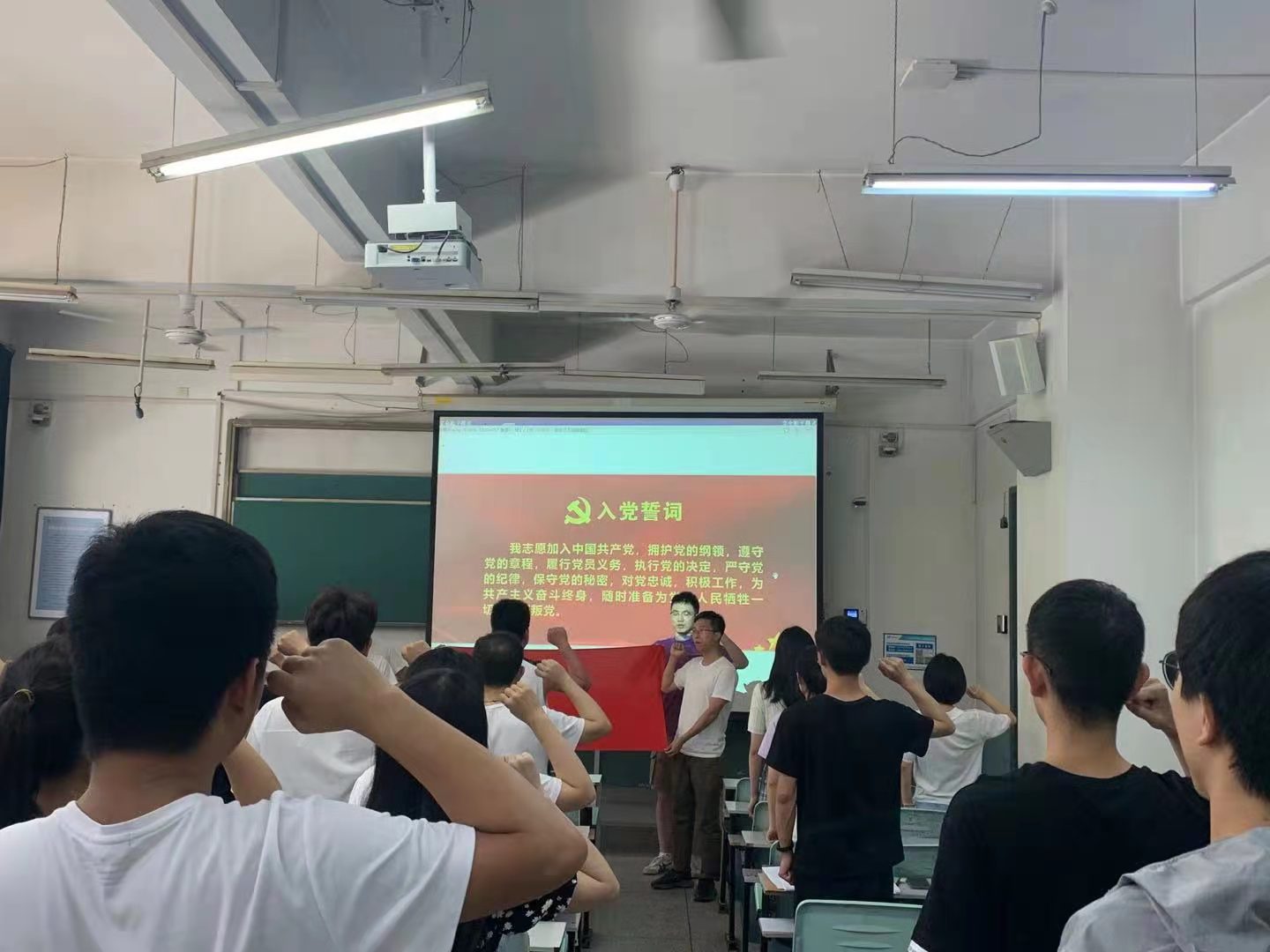 全体党员观看了《习近平:铭记奋斗历程担当历史使命 从党的奋斗历史中汲取前进力量》《我宣誓》等视频。“我志愿加入中国共产党,拥护党的纲领,遵守党的章程……为共产主义奋斗终身,随时准备为党和人民牺牲一切,永不叛党。”在支部书记的带领下,全体党员面向党旗,举起右拳,发出了铿锵有力的宣誓声。