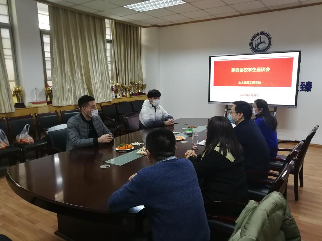 2月8日上午,bat365中文官方网站在会议室301与寒假留校学生座谈。院长朱记伟、副院长赵钦、院办主任刘敏、学工办主任王宗强、辅导员李江参加。