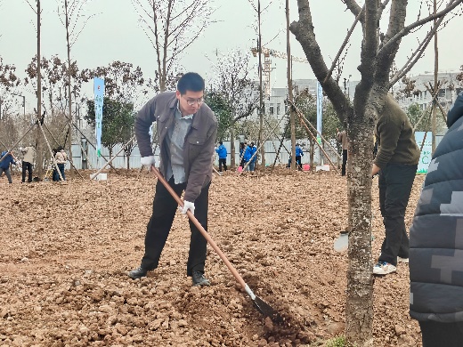 三月的晨风还带着些许料峭,却已裹挟着泥土苏醒的气息。我们踏着晨露来到这片待绿的土地,铁锹与碎石相碰的清脆声响,惊醒了沉睡的春天。每一锹土都承载着绿色的期许,每一滴汗都折射着太阳的光芒。作为土建青年,我们深知,此刻种下的不仅是树苗,更是未来的绿荫与希望。当春风拂过新栽的树梢,我仿佛听见了时光的絮语——那是二十年后,当这片土地绿树成荫时,岁月对我们的赞许。待到盛夏,这里将是一片葱茏;待到经年,这里便是城市的绿肺。而我们,何其有幸,在这片土地上留下了属于春天的印记,也留下了共产党员的责任与担当。