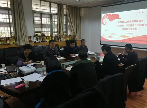 按照中省“不忘初心、牢记使命”主题教育有关要求,12月5日下午,bat365中文官方网站党委在教四楼301会议室召开“不忘初心、牢记使命”主题教育专题民主生活会,土建学院全体领导班子成员参会。校纪委书记李鹏,校主题教育第一巡回指导组成员刘玉萍参加了此次会议。