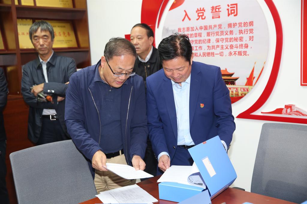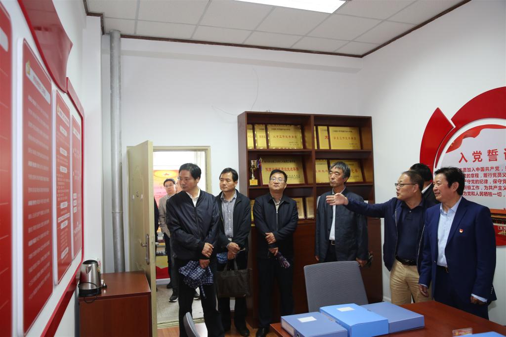 王青耀同与会人员首先参观了学院党建文化长廊,展示学院近两年党建活动内容及成效,介绍了学院“抓党建就是抓发展,抓发展必须抓党建”的工作理念,“主题党日+”系列活动的党员实践教育模式以及“一年一主线,一月一主题”的工作思路。随后,与会人员参观了党建活动室,查阅了学院“不忘初心、牢记使命”主题教育以来的学习资料和阶段成效。