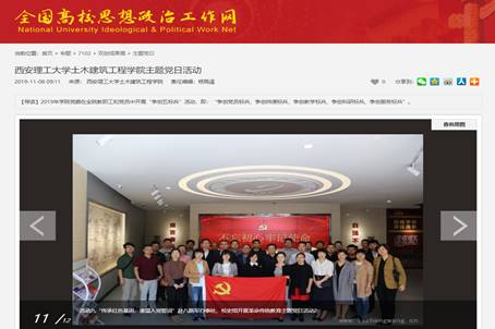 近期,由高等教育出版社主办,教育部主管,教育部思政司指导的全国高校思想政治工作网新时代全国高校党建成果专栏刊载了我院党委书记王青耀撰写的《如何让主题党日有“三气”更有“三度”》一文。文章从突出政治功能、增强教育实效和贴近工作实际三方面阐述了如何使主题党日活动做到有“三气”更有“三度”,既是我院党建工作经验性总结,也是规律性认识;既是原则方向,也是具体抓手,是我院党建工作必须长期坚持并不断深化的行动指南。