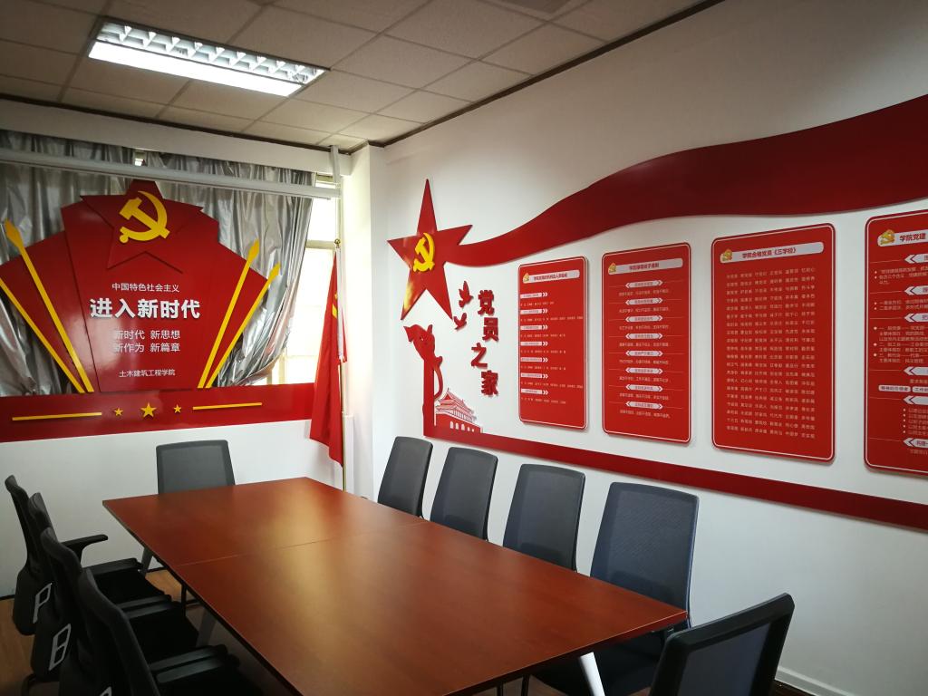经过精心设计,新打造的党建文化墙覆盖学院办公必经区域,红色主题标识墙引人注目。党建文化长廊及党建活动室以“传承红色基因,不忘初心,不忘来路”为主线,统筹兼顾,将党建文化与学院工作相结合,图文并茂,内容涵盖了党章、党规、十九大报告、习近平总书记关于教育的重要论述、学院党建工作简介、学院党委组织架构,以及近年“主题党日+”系列活动掠影等。
